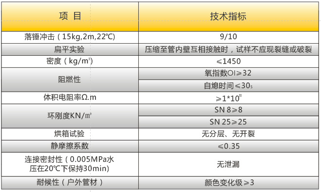 高強(qiáng)度聚氯乙烯(HPVC)雙壁波紋管內(nèi)、外壁之間呈中空環(huán)狀結(jié)構(gòu),充分利用工字鋼結(jié)構(gòu)原理,提高截面慣性矩,環(huán)鋼度高。產(chǎn)品具有強(qiáng)度高、韌性好、質(zhì)地輕等優(yōu)點(diǎn)。產(chǎn)品運(yùn)用開(kāi)挖工程,可代替MPP單壁波紋管、玻璃鋼管、PVC-C電力管、PVC-U通信管等管材。